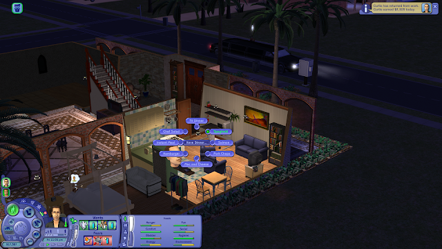 After gaining a crush on each other while playing at the Zuimelhof Family back in round 3, it was decided through a poll that townies Curtis Ryan and Victor Lillard would move in together at Curtis' apartment at the Stratford Strip.