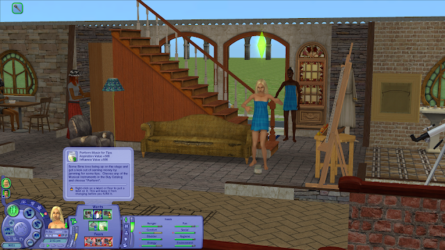 Chris has her morning shower while David works on his painting, earning a point for Creativity along the way!
